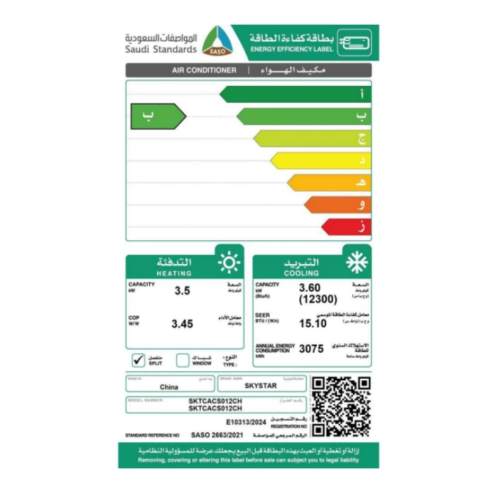 مكيف اسبلت سكاي ستار 12300 وحدة انفرتر wi-fi – حار/بارد SKTCACS012CH