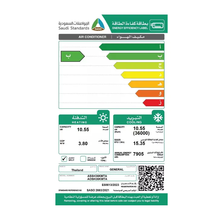 • كفاءة طاقة B لتقليل الاستهلاك.