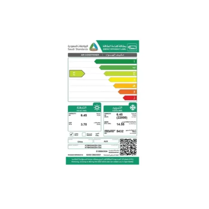 - يعتمد غاز تبريد R32 عالي الكفاءة وصديق للبيئة.