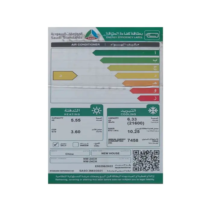 يعمل مكيف اسبليت نيو هاوس 21600 وحدة بأنظمة تبريد وتدفئة متطورة تتيح لك ضبط درجة الحرارة بسهولة لتلبية احتياجاتك طوال العام يوفر المكيف هواءً باردًا منعشًا في أيام الصيف الحارة ويدفئ الغرفة بكفاءة في فصل الشتاء مع توزيع متوازن للهواء في جميع أرجاء الغرفة تضمن هذه الأنظمة أداءً مستقرًا وفعالًا مع كفاءة عالية في استهلاك الطاقة مما يمنحك أجواءً مريحة وصحية في جميع الأوقات.