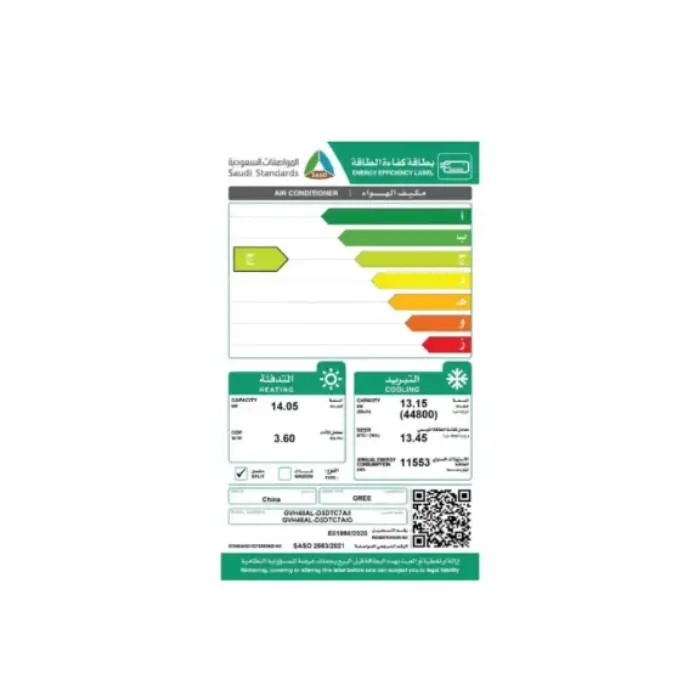 • استخدام غاز تبريد R410a الصحي والصديق للبيئة