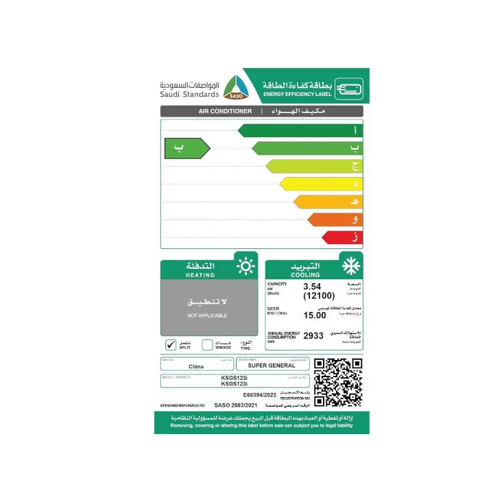 مكيف سبلت سوبر جنرال 12100 وحدة انفرتر – بارد KSGS123i