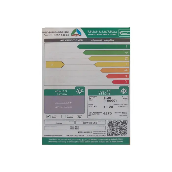 يستخدم مكيف سبلت نيو هاوس 18000 وحدة غاز الفريون R410-A الذي يتميز بفعالية عالية في التبريد وكفاءة ممتازة في استهلاك الطاقة، مما يساعد على توفير أداء قوي دون زيادة في فاتورة الكهرباء يُعد هذا الغاز صديقًا للبيئة وآمنًا على طبقة الأوزون مقارنة بغازات التبريد التقليدية مما يجعله خيارًا صحيًا وآمنًا للاستخدام المنزلي كما يسهم غاز R410-A في الحفاظ على استقرار نظام التبريد وتوزيع الهواء البارد بشكل متساوٍ، ليضمن لك تجربة تبريد سريعة ومريحة مع راحة وهدوء طوال ساعات التشغيل.