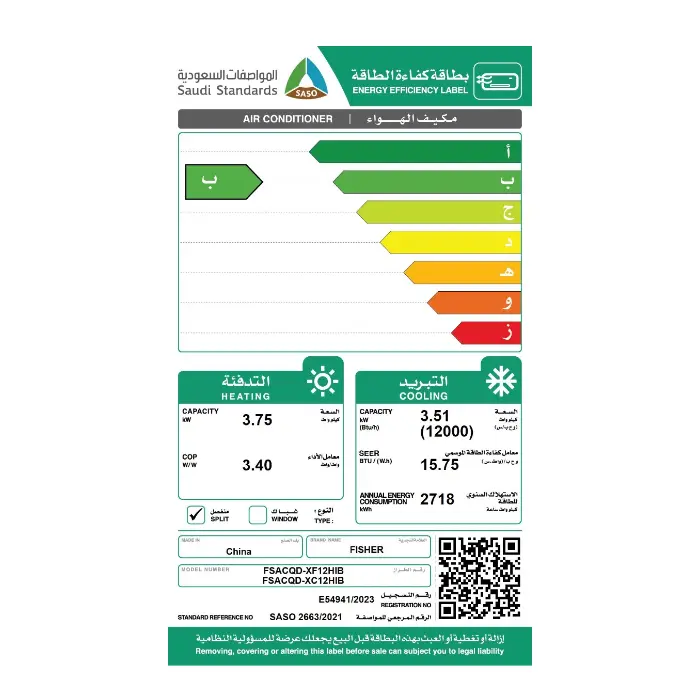 مكيف سبليت فيشر 12000 وحدة انفرتر حار – بارد FSACQD-XF12HIB