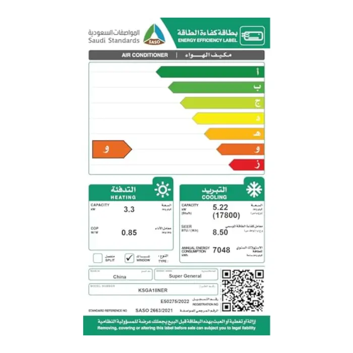 | الصنف | مكيف شباك سوبر جنرال أونو 17800 وحدة – حار / بارد |